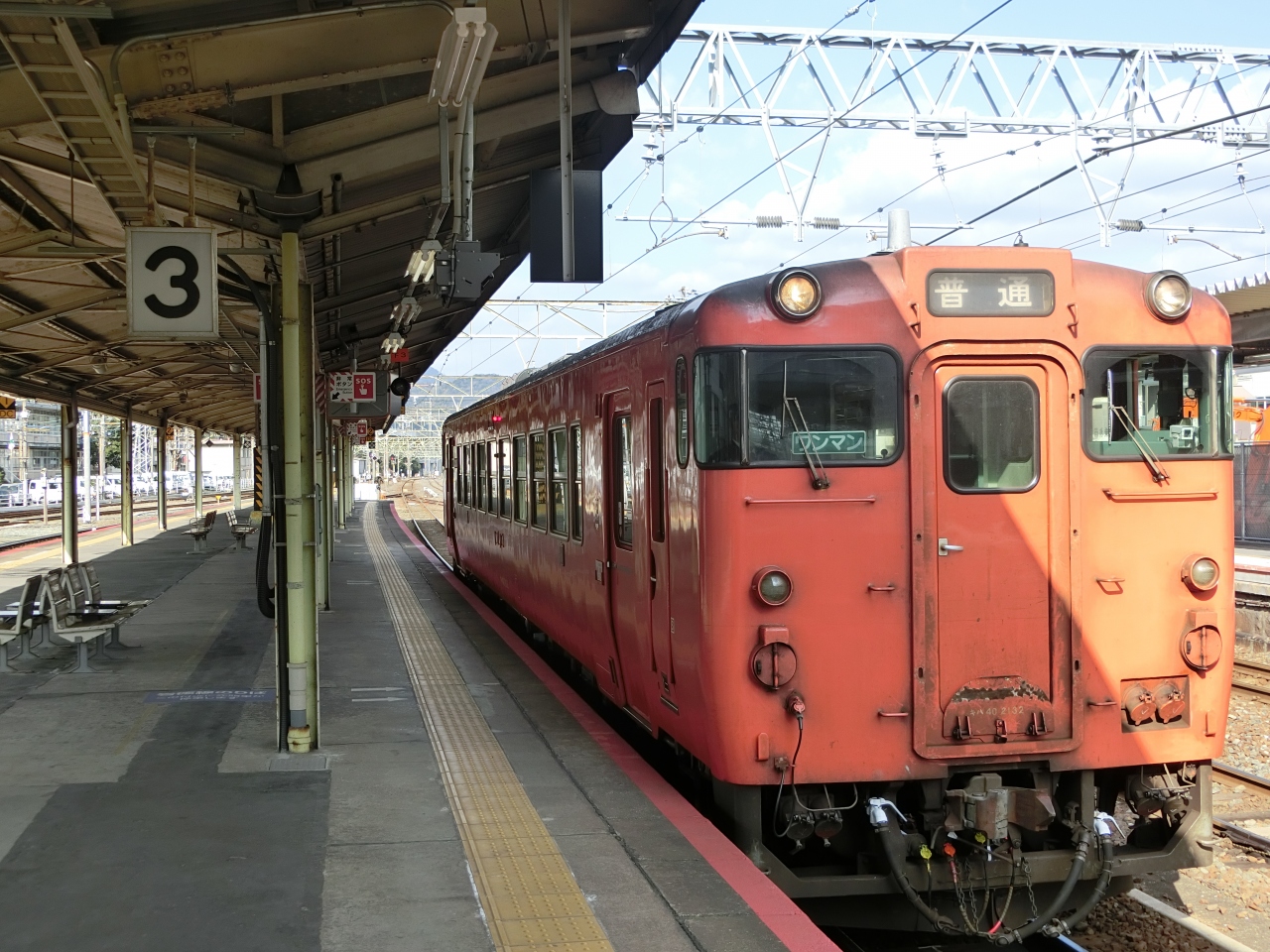 車両は気動車「キハ」が「徳山=岩国」間を約1時間20~1時間40分(時間帯によって差があります。)で結んでいます。