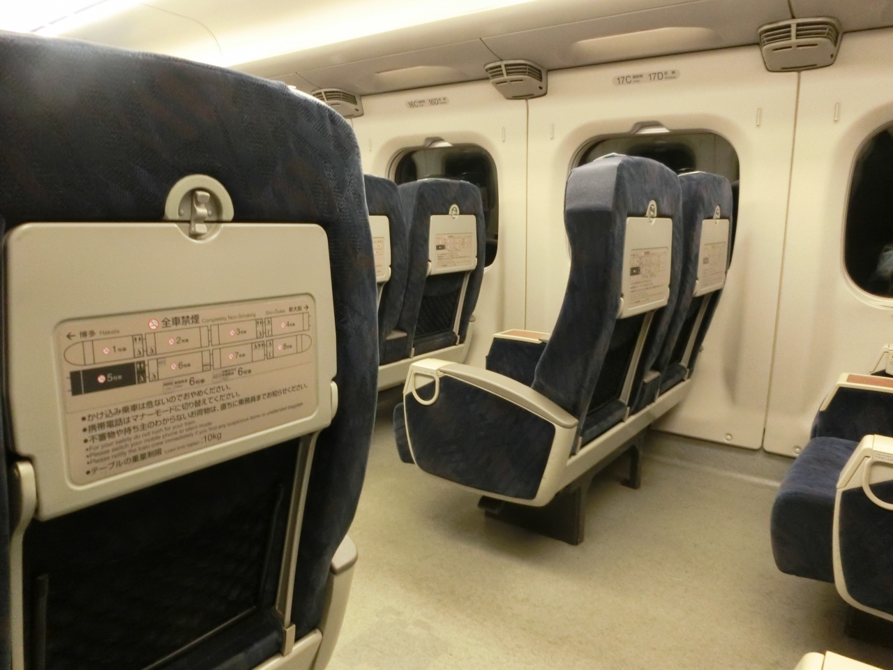 山陽新幹線・レールスターの指定席は2&2の座席配置です。