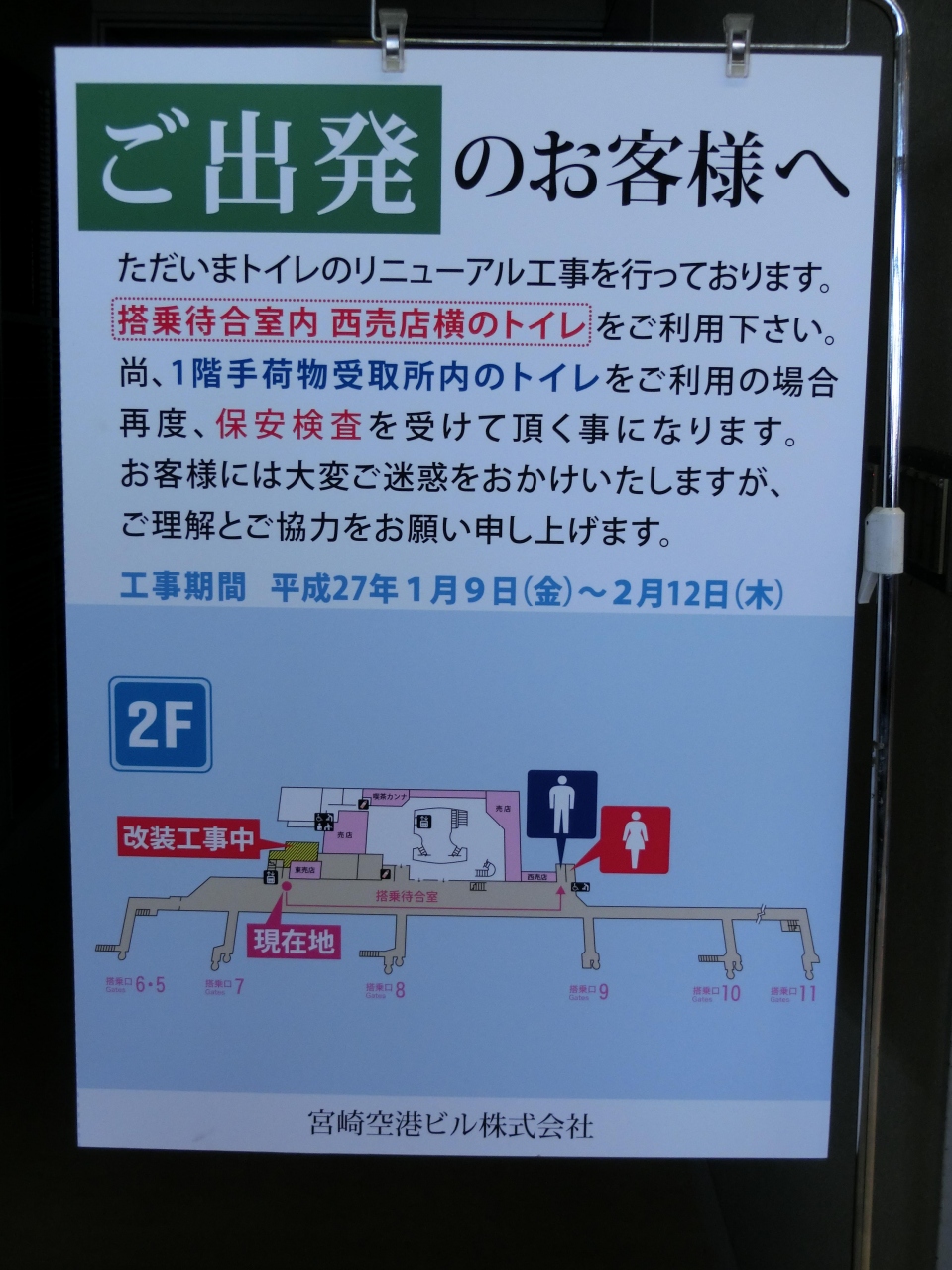 ・国内線搭乗待合室内、5・6番ゲートに近いトイレは工事中のため閉鎖されています。