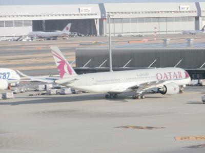 ・・・<カタール航空機>・・・国際線エリアの端の方のSPOTに見覚えの...
