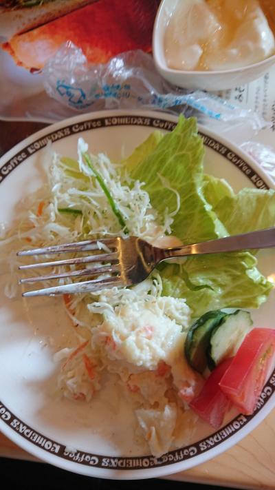 加古川市にあるコメダ珈琲加古川平野店です。店舗も国道2号線沿いにあるので分かりやすく、駐車場も完備されています。モーニングはバタートースト、ゆで玉子に追加でミニサラダと蜂蜜ヨーグルトをつけました。モーニングも3種類あり選べます。トーストやゆで玉子も追加出来ます。アイスコーヒーも程よい甘さで美味しかったです。
