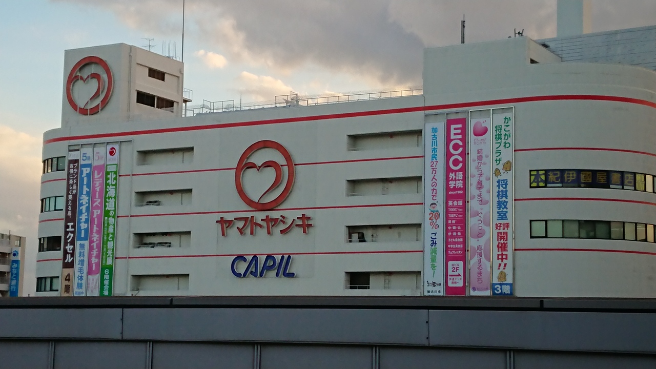 加古川駅前にあるデパートで夏になると屋上でビアガーデンをやっています。よく使う店舗は紀伊国屋書店加古川店です。デパートの中に入っています。私自身、近隣地区で1番種類豊富に揃っている本屋だと思います。JALカード会員の方、特約店なのでポイント2倍貯まります。1階に花梨と言うフルーツショップと同時経営しているケーキ屋があるのですが、すごく美味しいです。すぐわかりやすいので、良かったら行ってみて下さい。