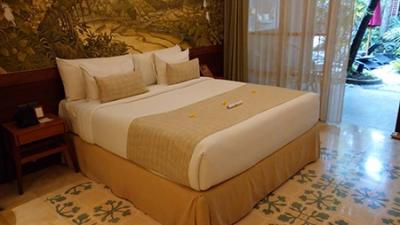 ウエルカムドリンクをいただきながらのチェックイン(ドリンクもおいしい!)バリの音楽が鳴る中、外の喧騒から数メートル奥に引っ込んだだけだというのに、とても静かな空間が広がっています。