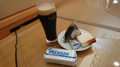 とりあえず黒ビールいただきながら、おにぎりなどをもぐもぐ。