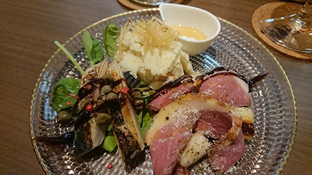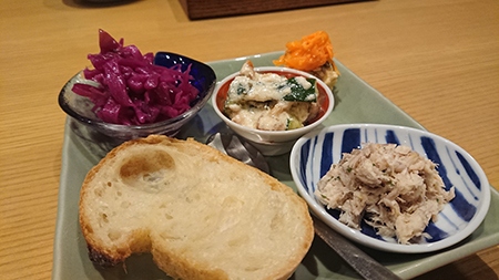 暫く待つとお料理が!前菜の盛り合わせは彩もかわいく、見ているだけでウキウキしてきます。どれおおいしく、思わず笑顔に。