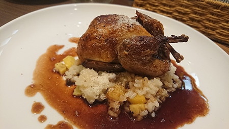 どれも魅力的なお料理で、チョイス大変でしたが、ウズラに一目ぼれ。パリっとした焼き目とジューシーな身。リゾットもおいしくご機嫌に。