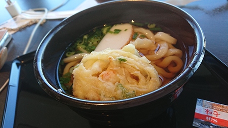 おうどんとラーメンとどっちにしようと真剣に悩むも、両方を半分こしていただきました。