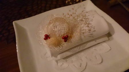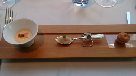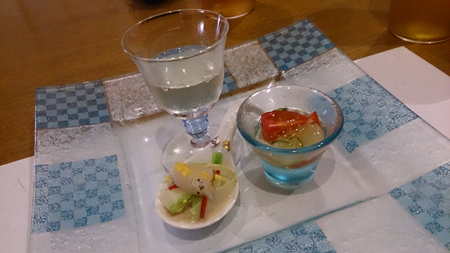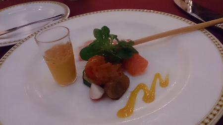 このタイミングの時はトマトのジュレがあったのですが、トマト……透明のジュレを作るのは本当に時間がかかるんですよね……それが前菜にさらりと出てきてもう本当に驚いてしまいまして……。