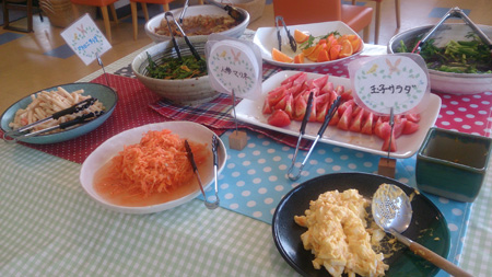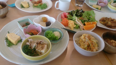 お野菜がいっぱいたべたい!そんなときにぴったりなバイキングです。ヘルシーなサラダバーたんまり食べたい…と思いお邪魔したら、想像以上に野菜を使ったお料理+プレートまで頂けてしまうというびっくりなお店でした。具だくさんお味噌汁も、親子丼も思わずにんまり笑顔になれます。