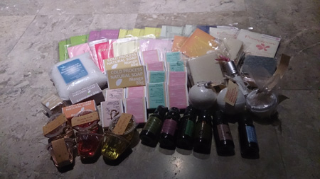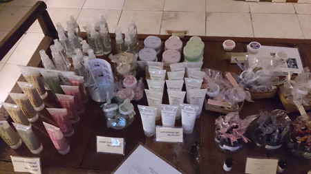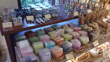サシェ、石鹸、ボディーバター、バスオイル、ルームフレグランス他もう数えきれないほどの商品の数々!!見ていても楽しいですし、一生懸命チョイスをしているとあっというまに時間が経っているような状態でした。