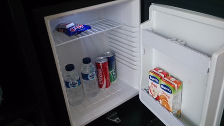 お部屋はレインシャワーが気持ちいいのですが、ちょっと滑りやすいので注意が必要。冷蔵庫の中身はすべて無料。