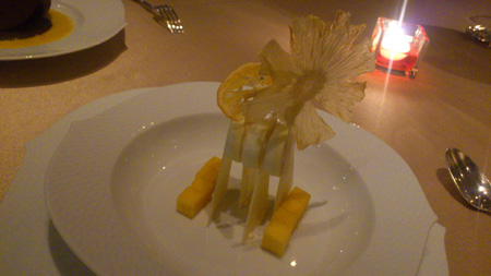 そしてデザートが斜め上を行く造形物になっていて、ちょっと崩すのをためらってしまいました……。