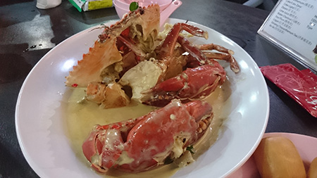 とりあえず大きなのをお願いしたのですが、本当に大きかった…そしてかたい!蟹の甲羅を割るハサミを貸してもらえるのですけど、あまりのかたさに両手でパチンと割る状態でした。