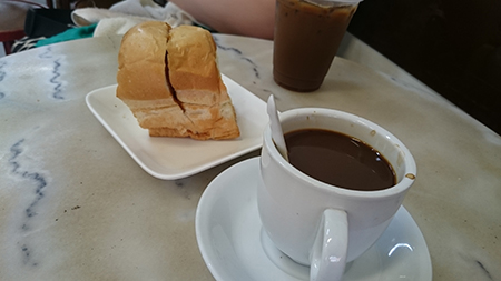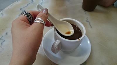 コーヒーはベトナムコーヒーのような雰囲気。寧ろ飲みやすいです。カップにレンゲというのもちょっと笑ってしまいます。