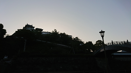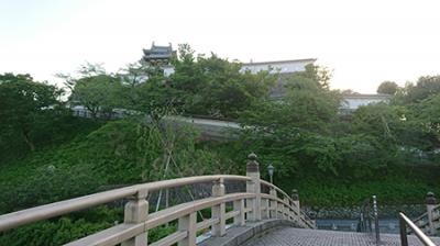 明智光秀が建立したお城です。しかし当人が居た時間はほぼほぼなかったとのことで。お城のお堀の橋がとても厳しいカーブ。これは雨だとなかなかに危険じゃないかしら!?