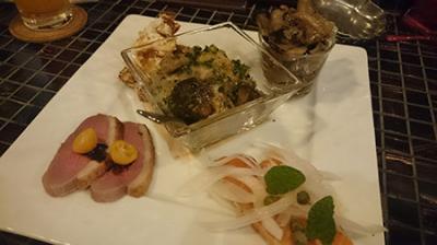 前菜の種類なども豊富。そこから盛り合わせの品物を自分で選べるのも面白い。