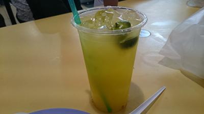 チキンライスにライムジュース、そしてホッケンミー。900円程度を半分にわけてのランチでしたので、一人頭の金額の安さに笑ってしまいます。