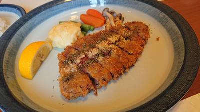 お料理の種類とても多くて、選ぶのが大変でした。チキンソテーをチョイスしましたが、スープの量もしっかり。サラダもモリモリ。そしてチキンも大きい。おいしかったですよー!