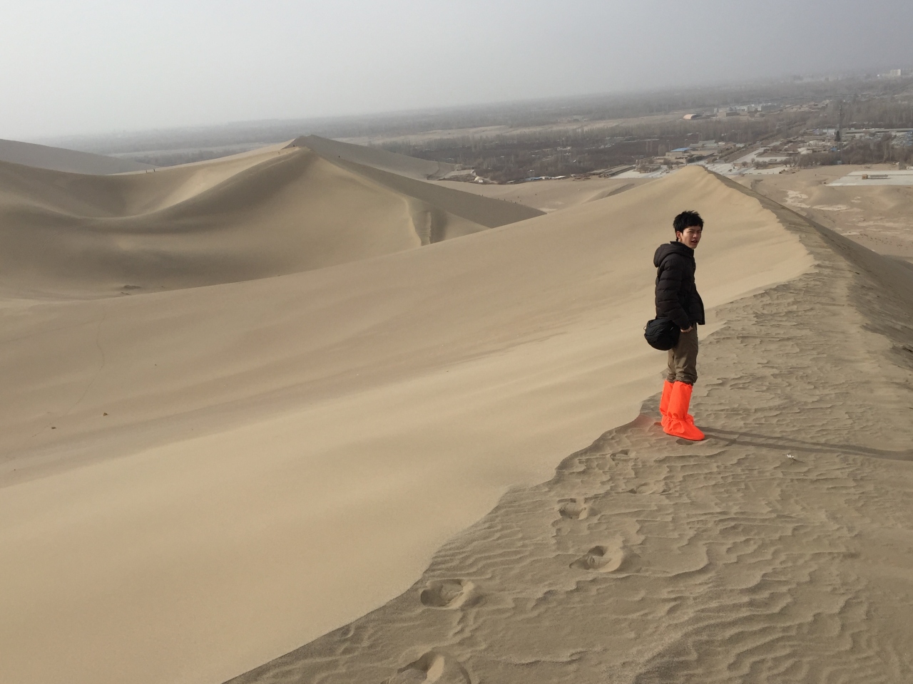 入場料は120元もします。本当のところ敦煌は莫高窟が目当てで、鳴沙山などは興味がなかったのですが、子供の希望もあり行く事になりました。いやいや120元が安く感じるほど楽しめました。3月で人が少なかったのですが、午後4時ともななれば(かなり西の敦煌も北京時間なので、太陽の位置から見るとまだまだ午後2時位)そこそこ暖かくなり、あまり寒くありませんでした。ラクダもすぐに乗れ、山の上の方まで行きました、往復100元だそうですが、下りは歩いてみたかったので、下りは放棄して砂丘を歩きました。15元の貸し靴カバーがあれば急な下りも「砂走り」状態で飛ぶように下れます。いくつかの砂丘を越えて本当に楽しめました。ここはラクダやスライダーの他にカートやグライダー、ヘリコプターまであって、完全なレジャーセンターと化していますが、一般人が砂漠で楽しめる工夫を提供してくれており、ただの砂漠とは違いました。域内すべてのエリアでパスワード無しでWi-Fiの電波が飛んでおり、情報も収集可能です。切符売り場の建物の中に無料の小型荷物ロッカーがあるので、できるだけ身軽になって砂漠を楽しんでいただけたらと思います。