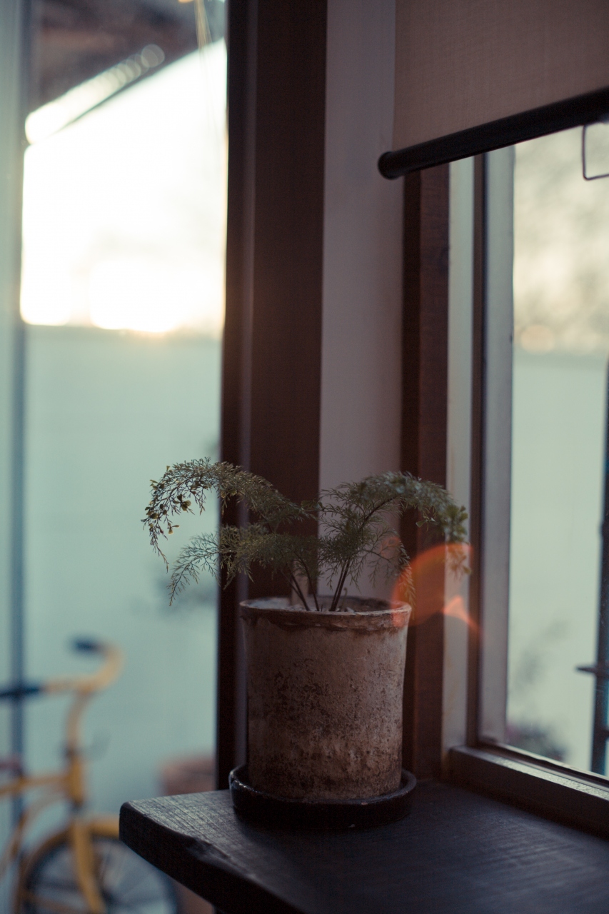 - こじんまり、広い窓、郊外型、石油ストーブ、本棚には本がたっぷり・・・隠れ家感満載。