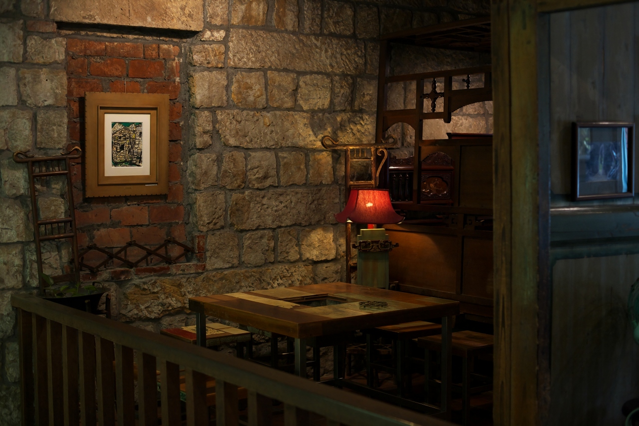 廊下やカフェの古い木製の家具、かわいいランプなど、おもいっきり浸れる雰囲気のよさはあります。