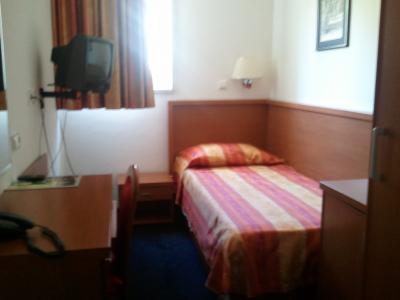 部屋は狭く、スーツケースはベッドの上でないと広げられません・・・