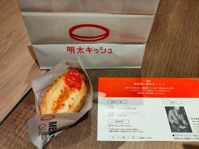 お次はふくやへ。明太キッシュ300円。ちょうどいい大きさ。ピリ辛でおい...