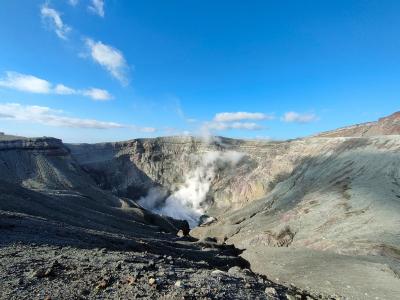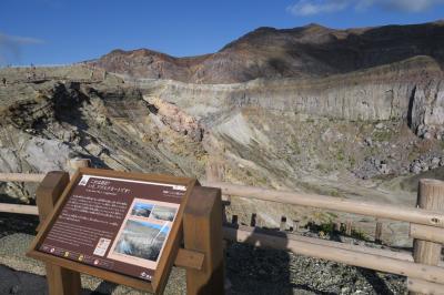 阿蘇山公園有料道路(普通車800円)を通り、火口周辺の駐車場へ。硫黄の...