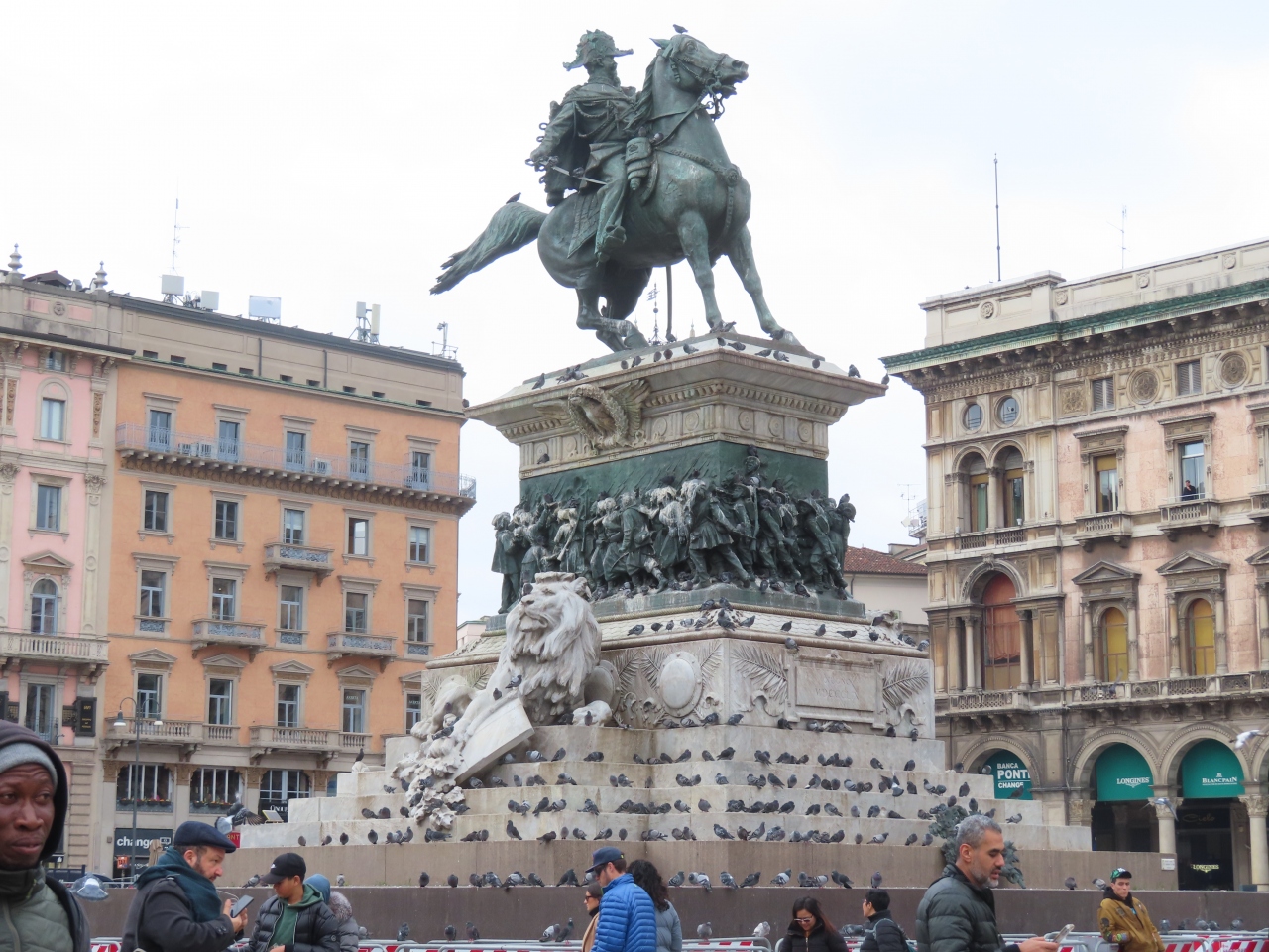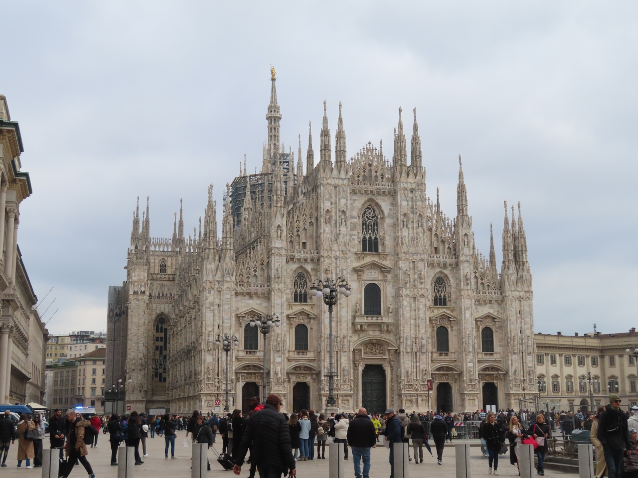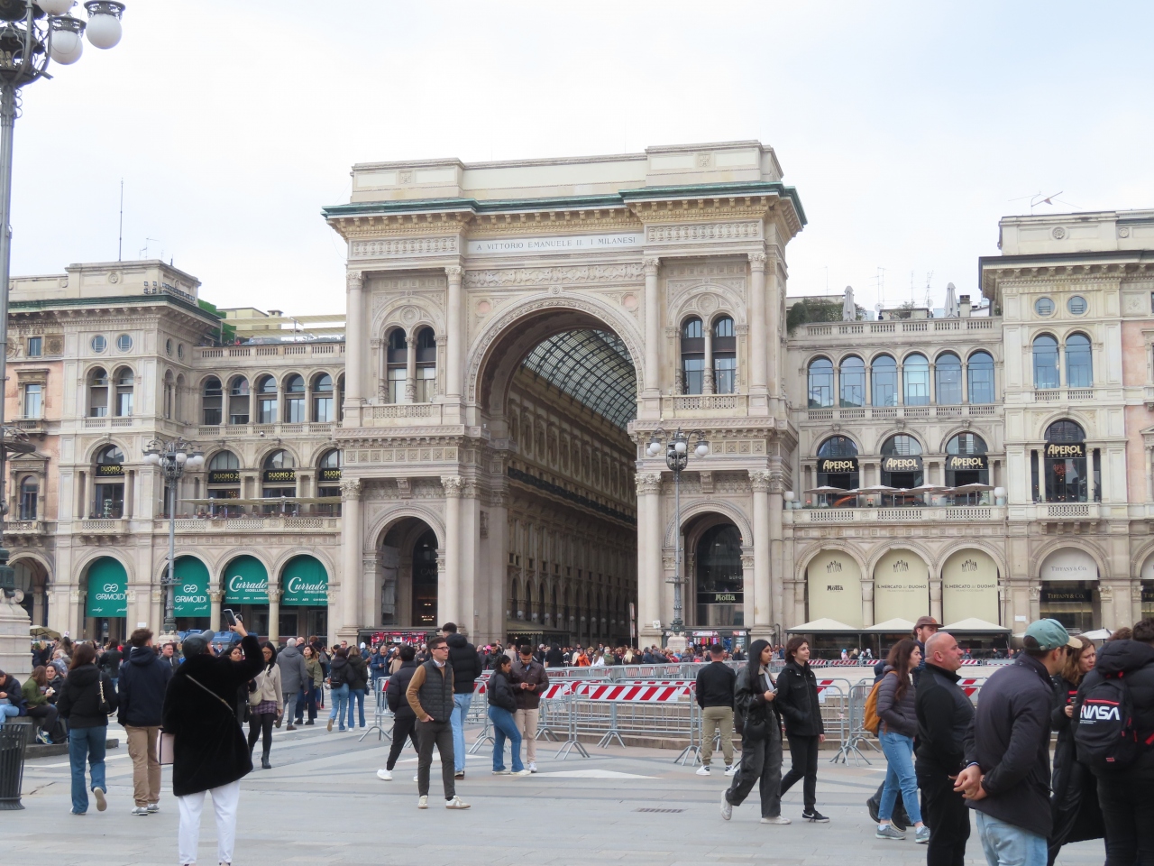 あまりにも有名なミラノ大聖堂ドゥオーモ。入場するならともかく、あの美しい外観を鑑賞するならこの広場から。まずできるだけ近寄って見上げて、次になるべく離れて全体を見るといいです。中途半端に広場の真ん中辺りからだと、たくさんいる人の頭がじゃまします。