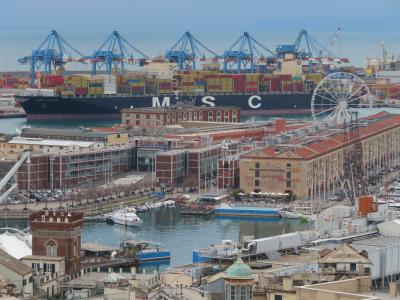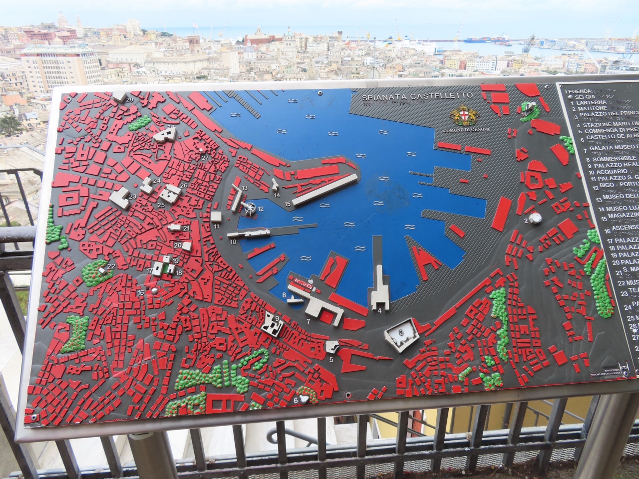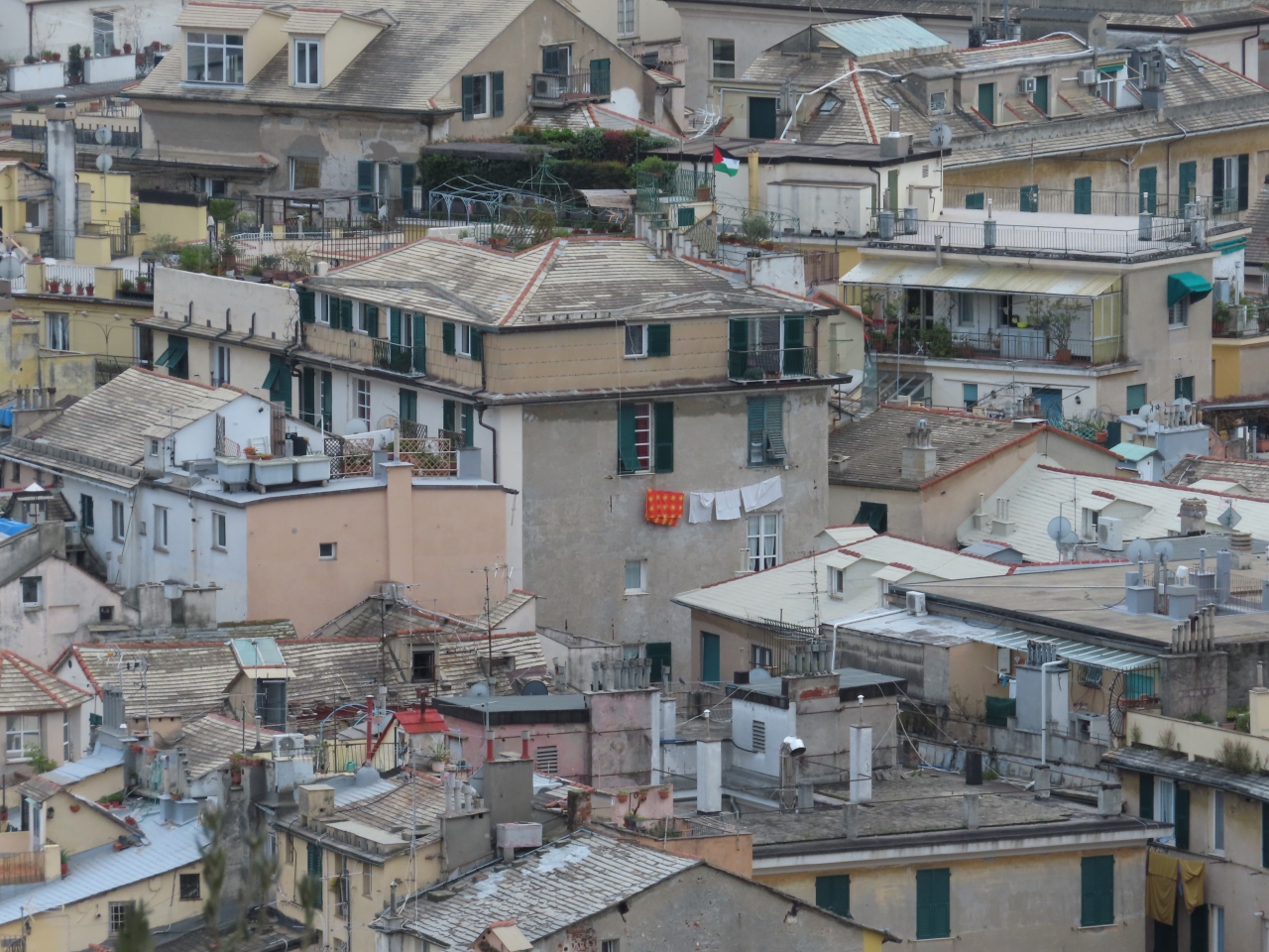 ジェノバの街、特に旧市街が見渡せる絶好の展望ポイント。ガリバルディ通りからだと「エレベーター」を使って簡単にのぼって来れます。徒歩でも遊歩道があるみたいです。欧州旧市街らしい独特の「美しい住宅密集感」がよくわかります。