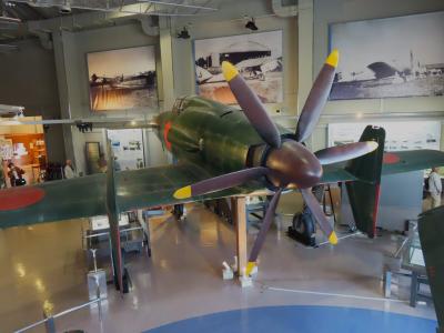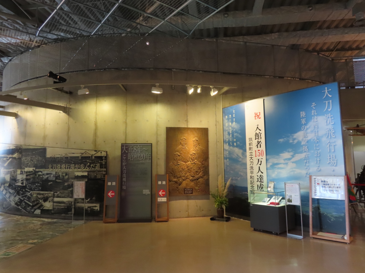 大興奮で初入館、こちらには「震電」という旧日本軍の幻の戦闘機(のレプリカ)が展示されているのです。ゴジラをやっつけましたよ、神木隆之介くんがこれに乗って。子どもの頃からすでにプラモデルなどで親しんでいた機体です。ジェット機のさきがけのような先進的フォルムです。もし量産されていたらB29たちに一矢も二矢も報いていたに違いありません。ローカル私鉄甘木鉄道の駅前にあります。