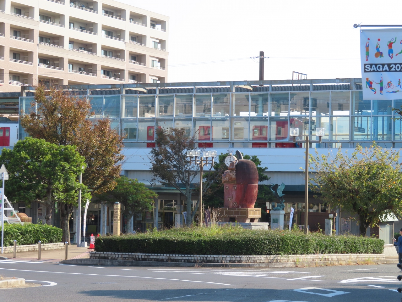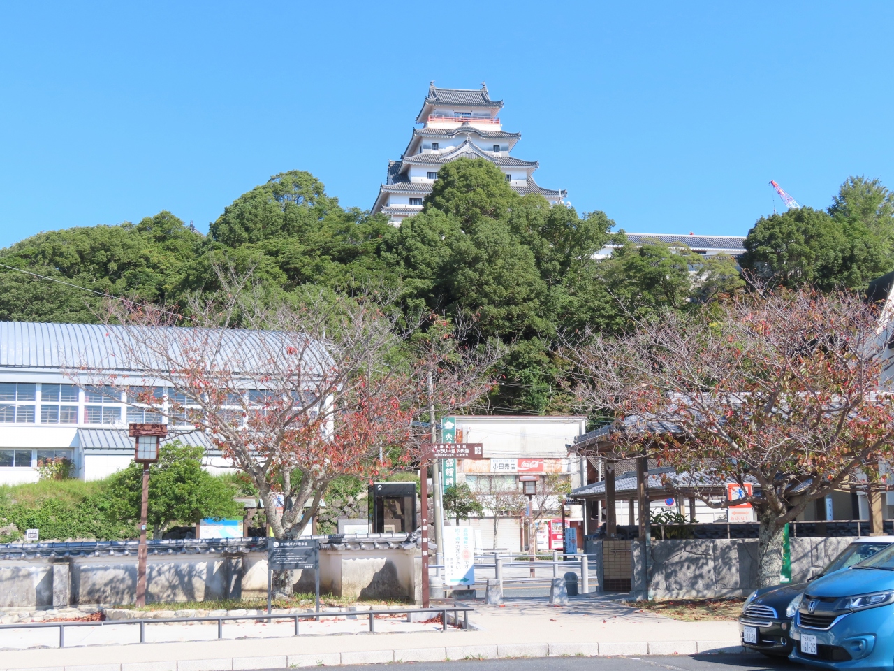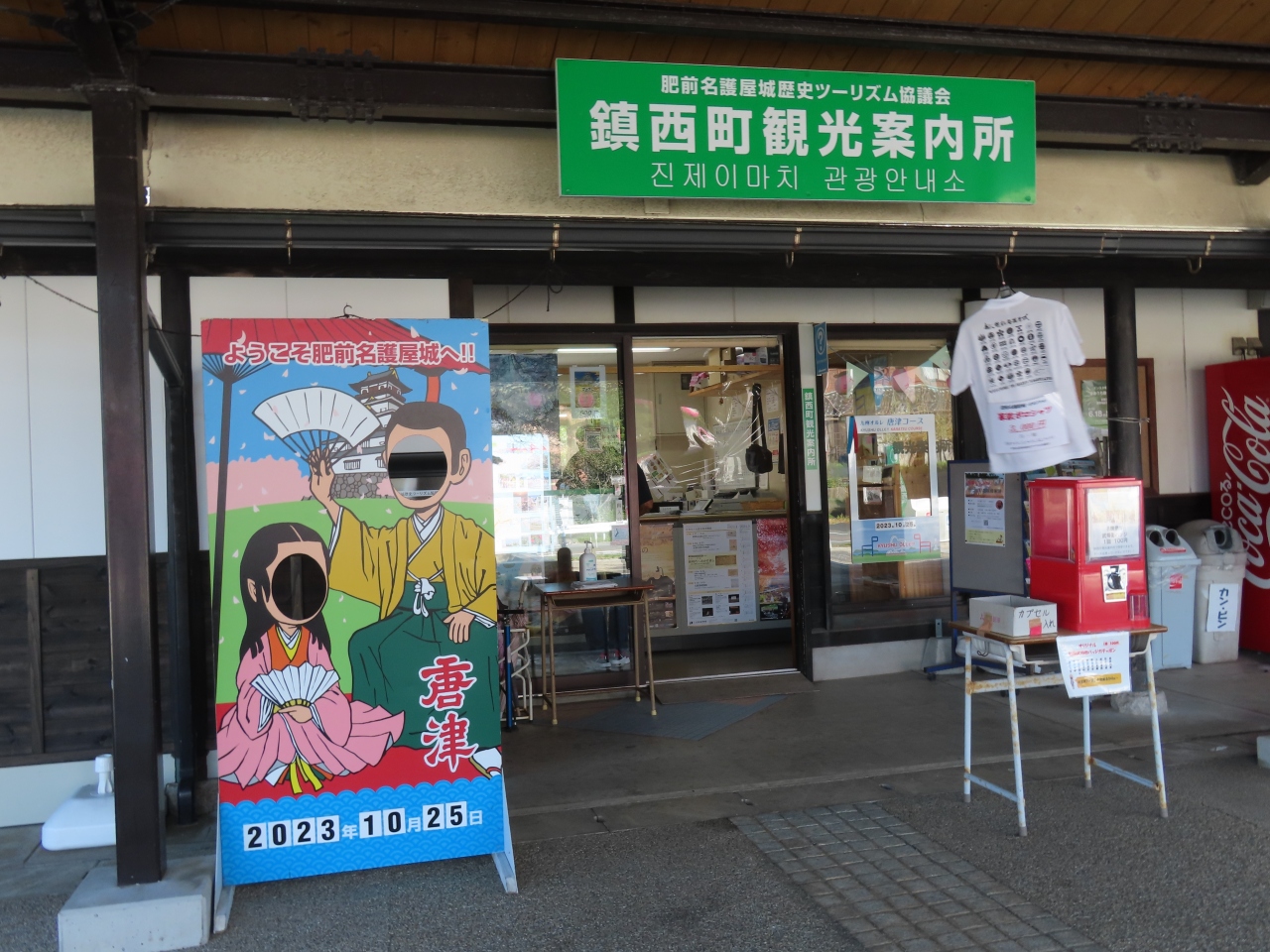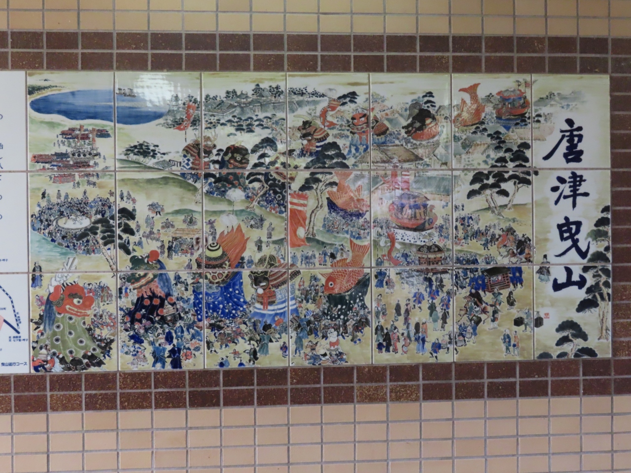 ちょこっと撮っておいてよかった。唐津城正面の広い駐車場、平日の午前中ということもありガラガラ。交通量多くはなさそう、かつ、道幅もさほど・・・なのに横断歩道が無く地下道にもぐらないと城側に行けない、なぜ?…もしかしてこれが答えか。