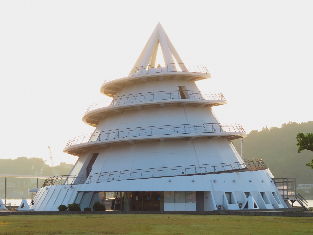 鉄道旅で熊本駅を早朝に出発。人吉方面へ向かう途中で三角線に寄り道しました。終点の三角駅が素敵な駅舎ということもあって。到着すると、折り返し熊本行き待ちが行列になっていたのに驚き。お仕事学校お疲れ様です。出ると駅はすっかり静かに。駅直結の港には名物?巻き貝形のフェリー待合場あり。