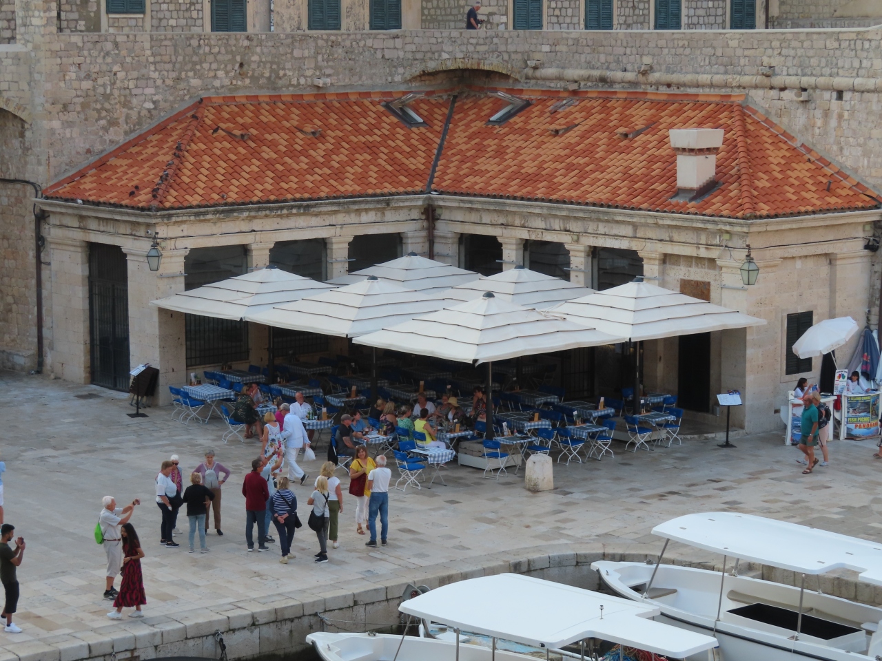 添乗員ツアーの自由昼食で利用。ドブロブニク旧港の美しい風景を眺めながら食事ができる一等地にありました。おもしろかったのはWCがエレベーターで2Fにあがった室内席フロア(この時は未使用だった)の奥にあったこと。