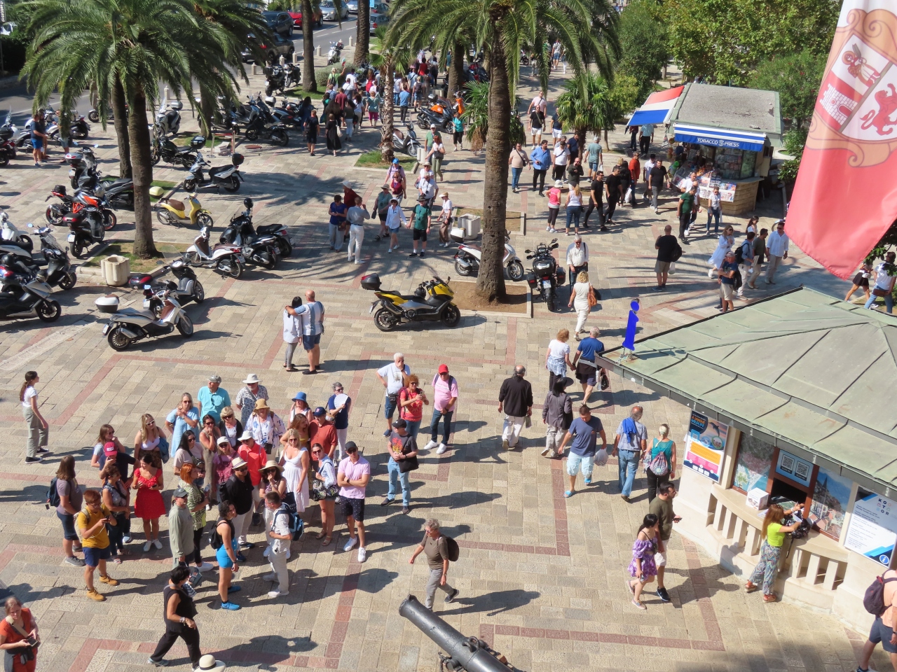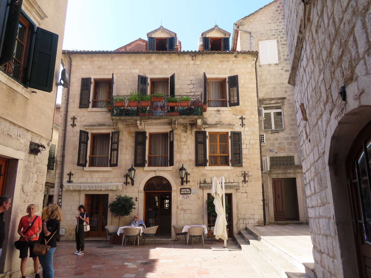 添乗員ツアーで観光。ドブロブニクを朝出発し、お昼前には到着し、ランチの後、市街を観光しました。モンテネグロとは黒い山という意味ですが、クロアチアからずっと続く石灰岩質の白い岩肌はここでも。急峻な山々にかわいらしい街、そのコントラストがとても秀逸でした。