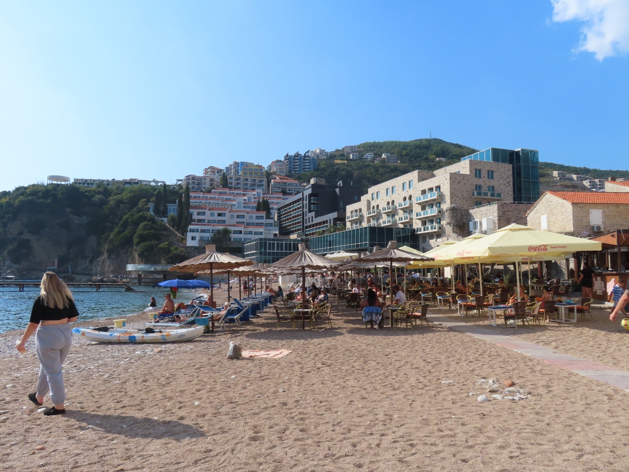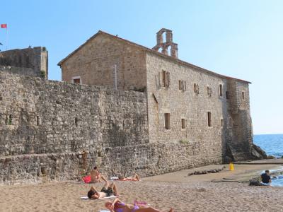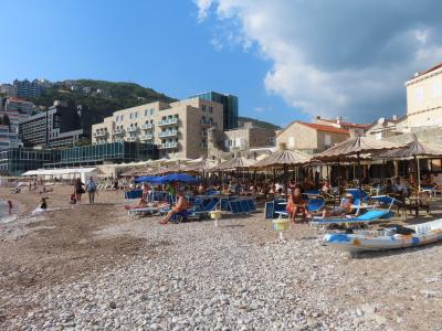 添乗員ツアーで訪れたブドヴァ。城壁内の旧市街が見もののようですが、むしろこのビーチの方が観光資源としては重要度大…なのでしょう。別荘ふうの建物やそれふうのホテルなどが林立していました。ビーチリゾートとしてたくさん外貨を稼いでいるようです。