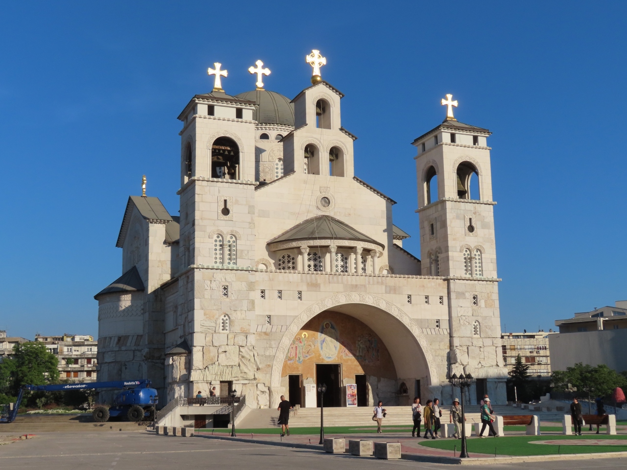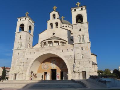 添乗員ツアーで訪問。まだ珍しいモンテネグロという国の首都は、さらに聞きなれない「ポドゴリツァ」という町。聞けば新しく整備されつつある都市ということで、歴史的な見所はあまりないそうです。一番の名所に…というわけではないでしょうが、近年完成した巨大な聖堂です。自由に出入りできます。土産物売店あり。