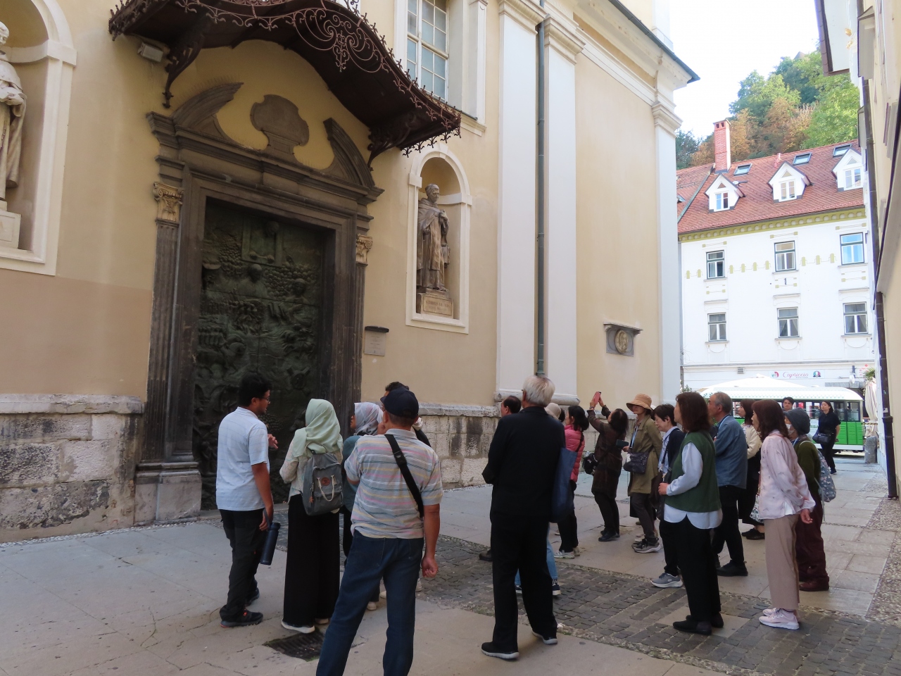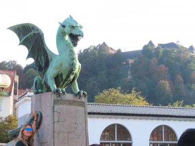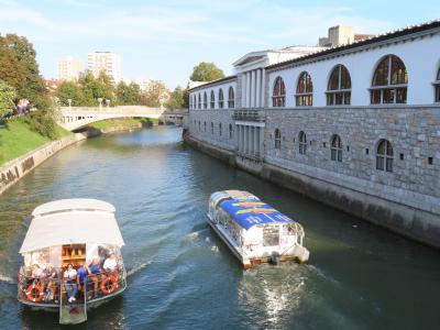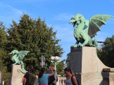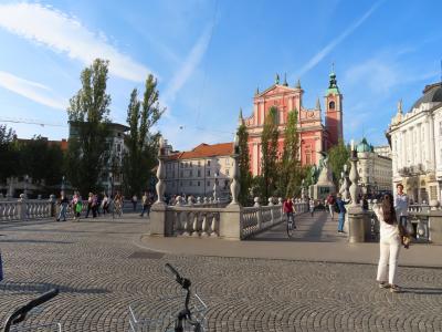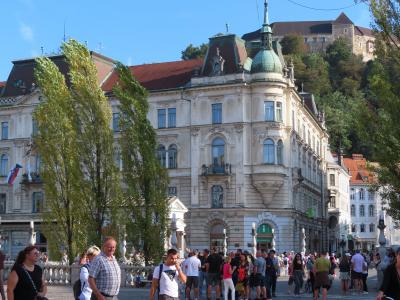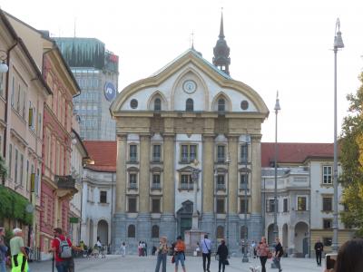 旅行社ツアーでの観光。リュブリャナ見物の中心となる三本橋の新市街側の広場。多様な建築様式の建物が並んでいて壮観です。この町この国の「顔」となっている場所かも。他国ではいがちな物売りとか怪しげな人なども見かけなかったです。とても平和で美しい広場でした。