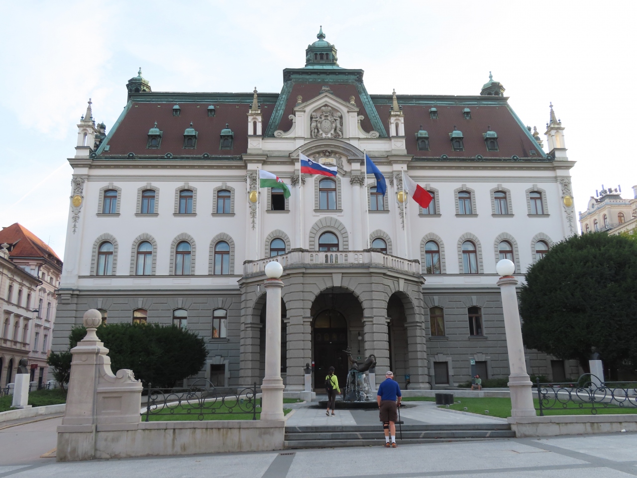 旅行社ツアーでの観光。リュブリャナ市街の見所の中心「三本橋」の新市街側を南へ少し行くとあります。「ズヴェズダ公園」という緑地があり、それに面しています。この緑地の周りには素敵な建物が並んでいて、これもそのひとつでした。