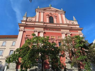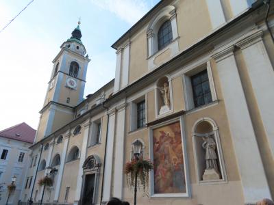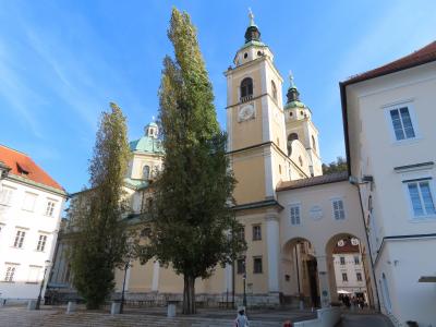 旅行社ツアーでの観光。「三本橋」新市街側からほど近い、広い四角形の緑地。何があるわけでもなかったですが、まわりの建物がとてもすばらしくてうっとりしてしまいます。「三位一体聖堂」「スロベニアフィルハーモニー」「リュブリャナ大学」などがこの公園を取り囲んでいました。