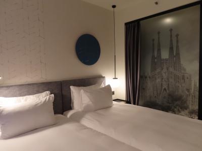 旅行社ルアーで利用。サグラダファミリアまで徒歩圏ホテル指定!というのが決め手で選択したHISのツアー。実際は10分いらないくらいという至近距離。ライトアップも土産物物色も気軽に楽しめました。シックで美しく広めの客室。屋上に展望スポットもあります。おすすめ。