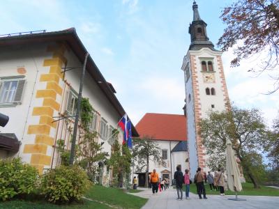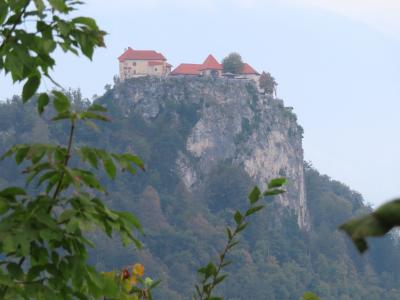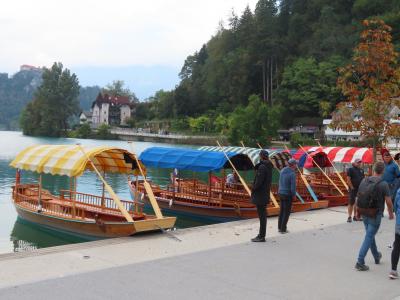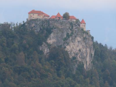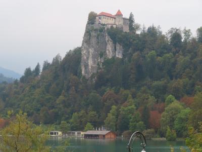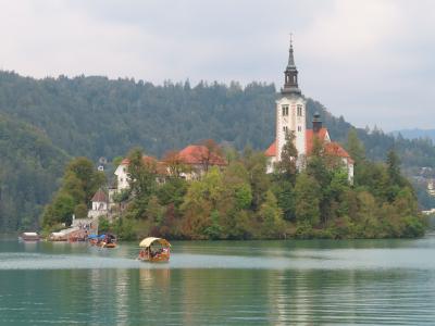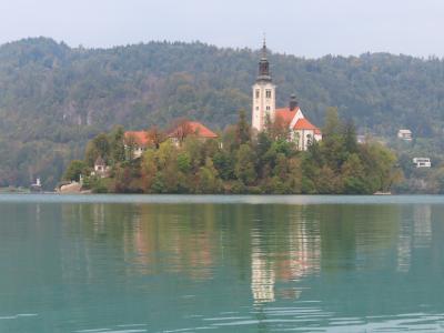 クロアチア・スロベニア向けの旅行社ツアー、いろいろ見てきましたがブレッド湖をはずしたものは無く、必須ポイントになってるみたい。で、そのメインが湖の小島にあるこの教会。周囲の周囲からも、いい眺めが楽しめます。教会内で綱を引き下ろして鐘を鳴らすことができます。