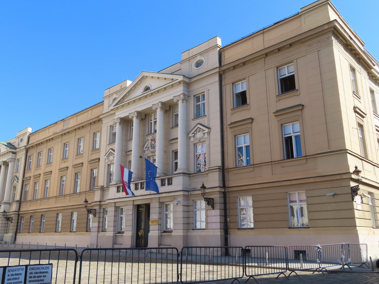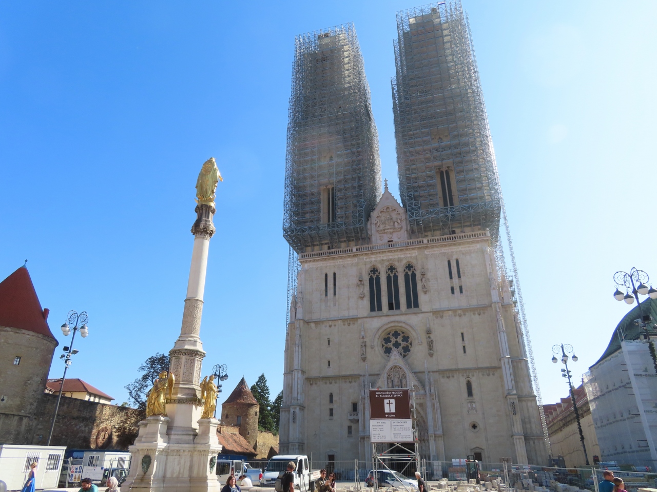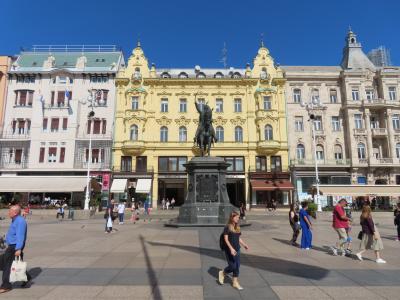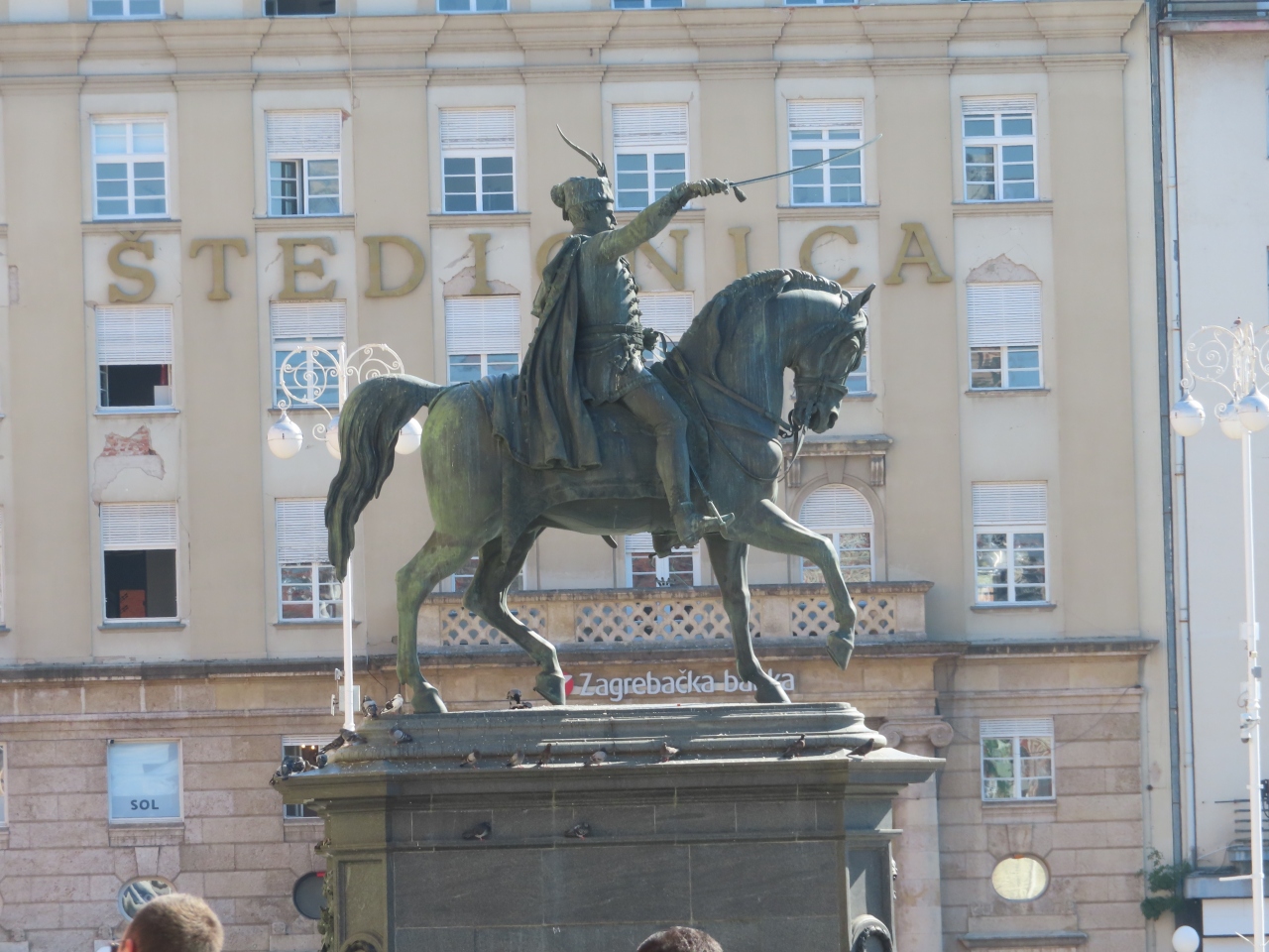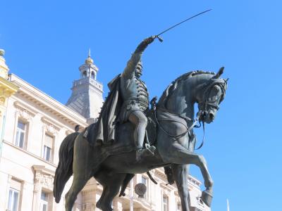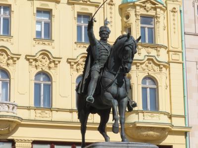 旅行社ツアーでの観光。ザグレブの新旧両市街の境にある「イェラチッチ総督広場」の真ん中にあるので、まさしくザグレブの中心だと言っていいでしょう。世界各地にこういった偉い人の騎馬像がありますが、ここのはひときわ勇ましい姿でした。
