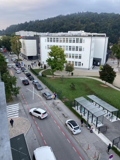 旅行社ツアーでの利用。リュブリャナ中心部からやや離れていますが、小さな都市なので遠く離れたという感じではないです。目の前は学校です。子どもたちがおててつないで集団登校?してる姿がなんともかわいらしかった。近くに地元型のスーパーもあります。