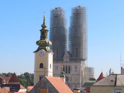 旅行社ツアーでの観光。貸切バスの乗降が運よくこの教会の前ででした。ずっと南の中央駅付近になることも多いそうで。段差の上側にある旧市街にあるため、市街全域からこの高い双塔が見えるのでしょう。あいにくの改修工事中。