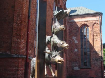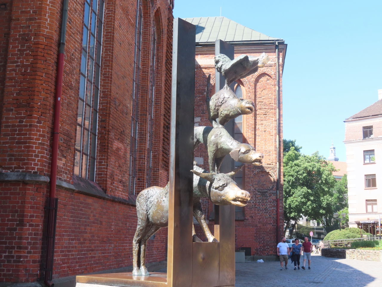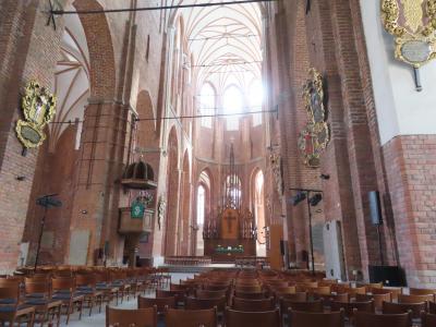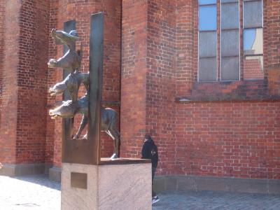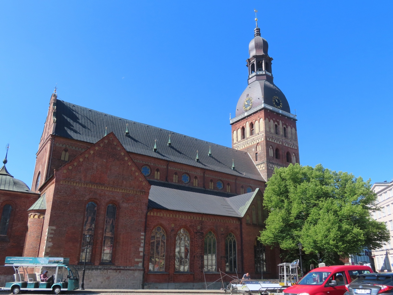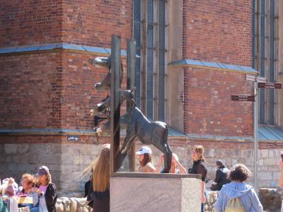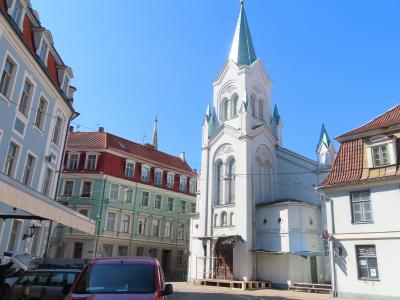 添乗員ツアーのリガ観光にて。大聖堂と名が付く教会ですが、高い塔を持つ教会が他にいくつかあるので、街最大の教会ぽくないです。古くに建てられたため、周囲が一段高い地面になっています。外側になぜかアルマジロのようなものがありました。