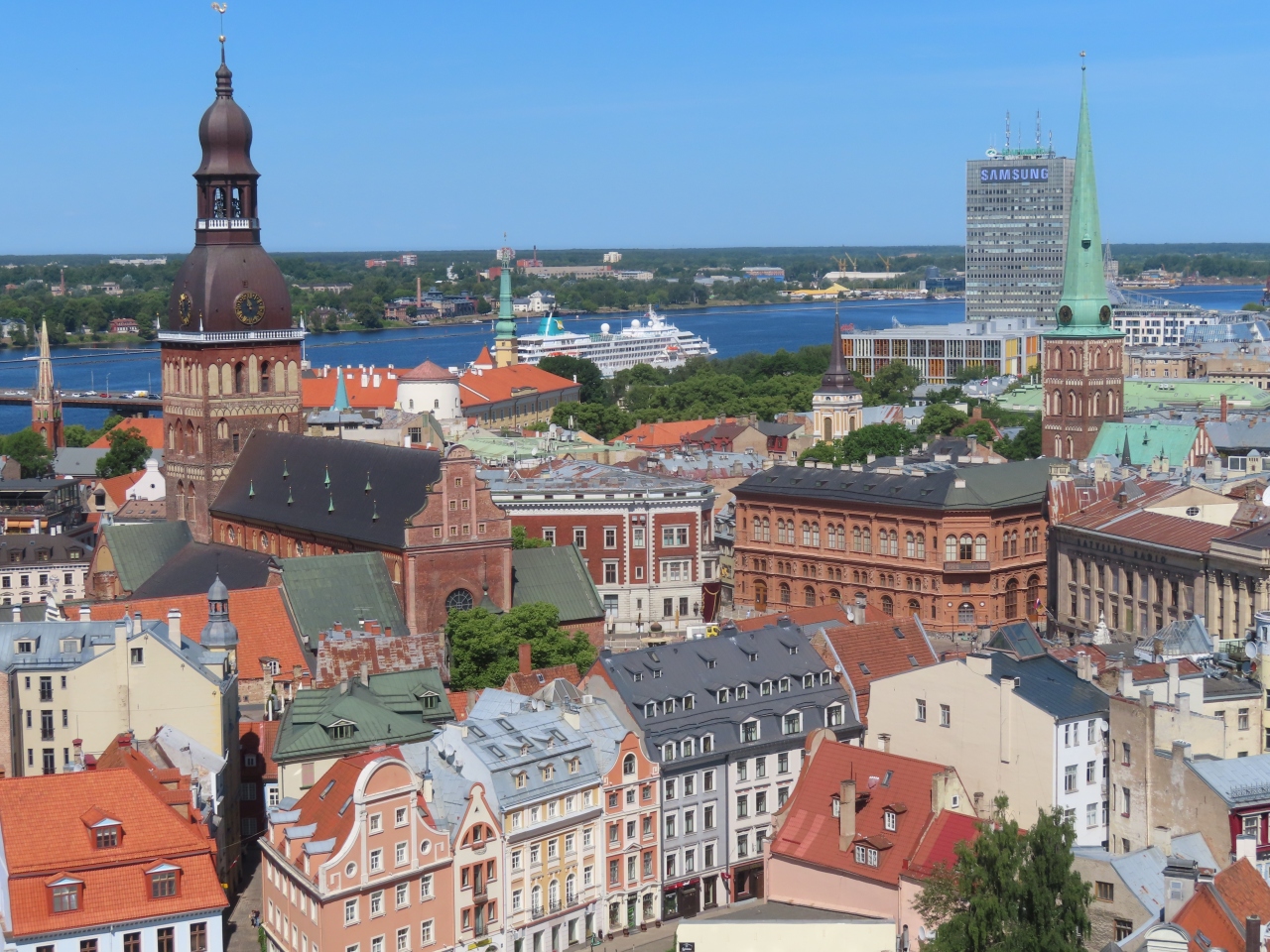 添乗員ツアーのリガ観光にて。午後の自由時間にのぼりました。有料ですが絶対おすすめです。エレベーター昇降なので楽ちんです。360°展望は当たり前ですが、リガというバルト三国最大の都市のいろいろな表情がたっぷり味わえます。
