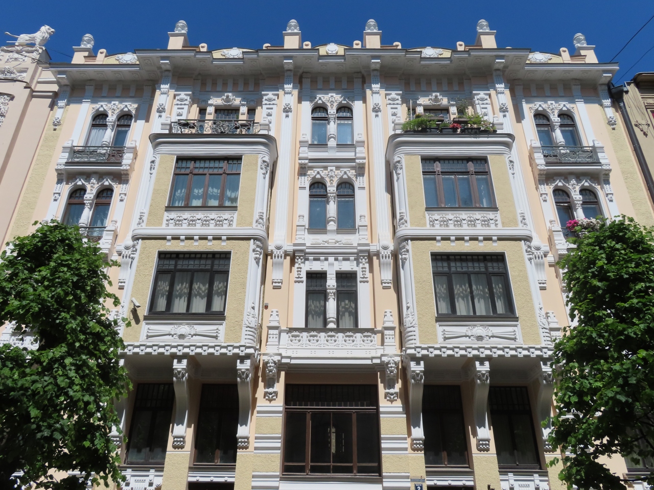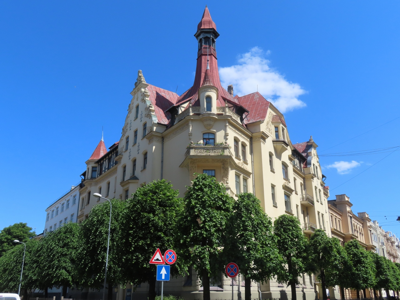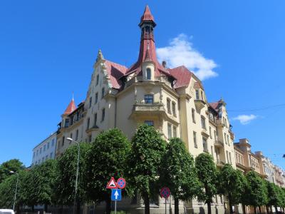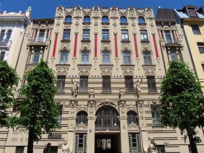 添乗員ツアーのリガ観光の半日自由行動にて。旧市街から徒歩でもじゅうぶんアクセスできます。これらの「建築群」以外にも新市街の「至る所」に素敵な建物がいっぱい建っています!大使館や美術館など名のあるものだけでなく。リガ最高。