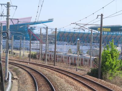 鉄道旅で、諫早から長崎本線で鳥栖駅到着。目の前に巨大なスタジアム。Jリーグ鳥栖フューチャーズの本拠地(で合ってますか?)連絡橋経由でならちょっと面倒くさいかも、スタジアム側にも改札口あったらいいですね。