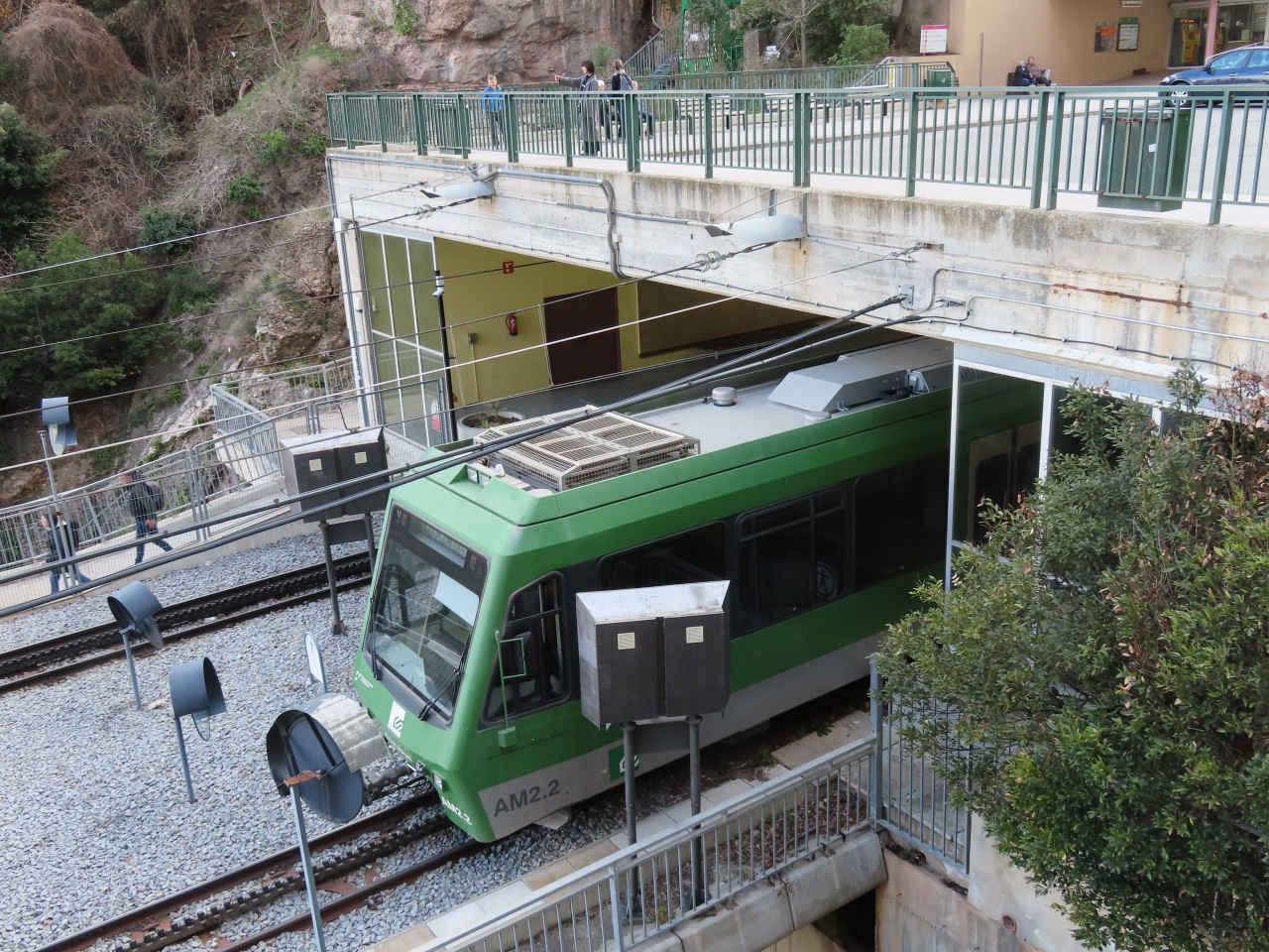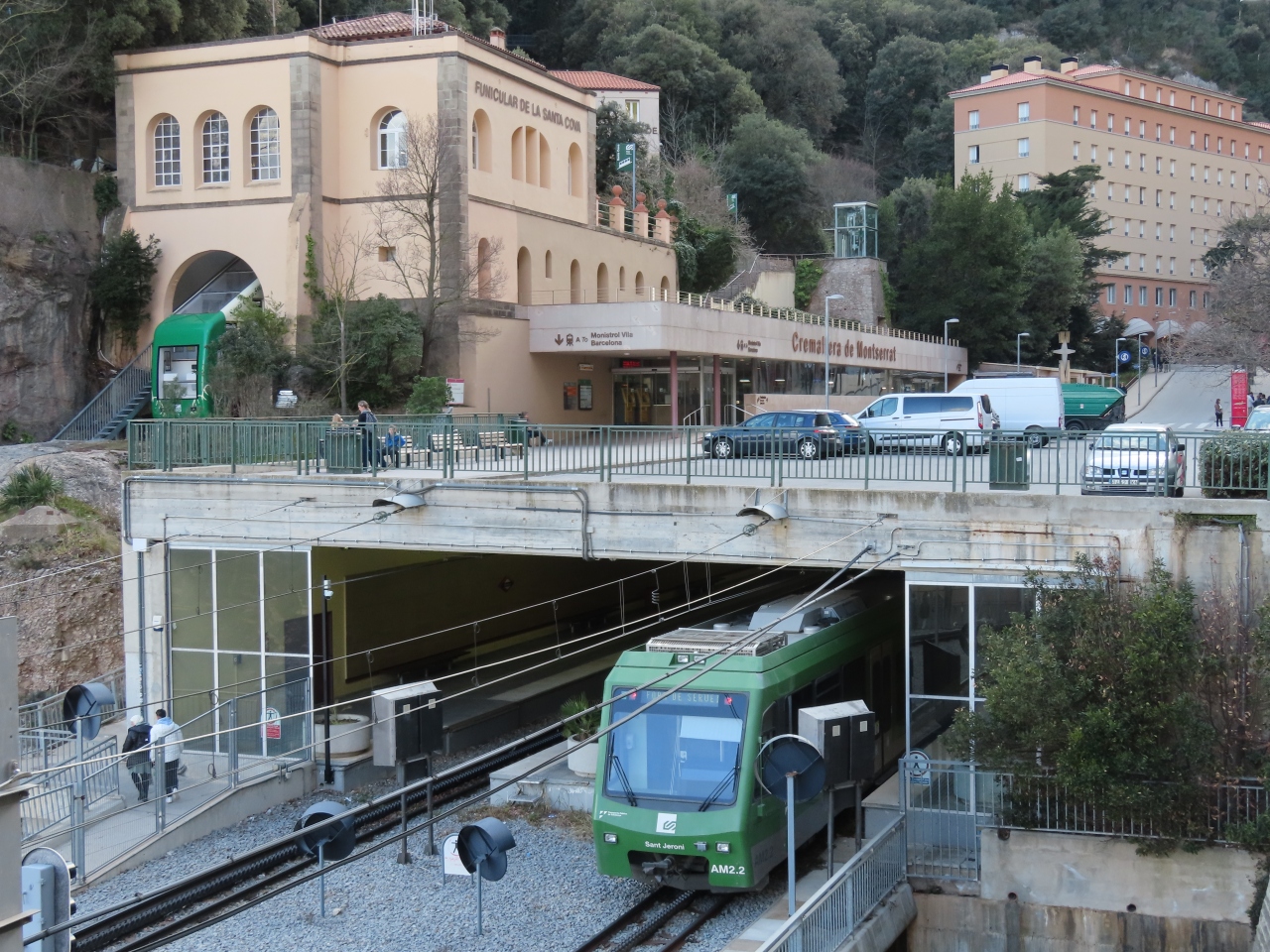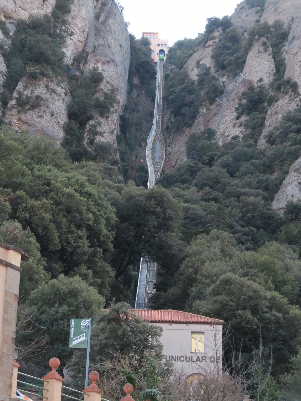 山上駅を見ただけで利用はしていないのですが、この険しい山にやってくるすごい鉄道です。歯車付き線路の登山鉄道、スイスにいっぱいありますが、ここスペインにも。バルセロナからこのモンセラに来るならこれを利用ですね。